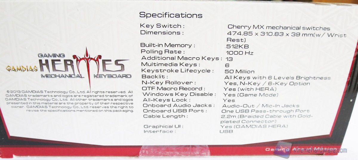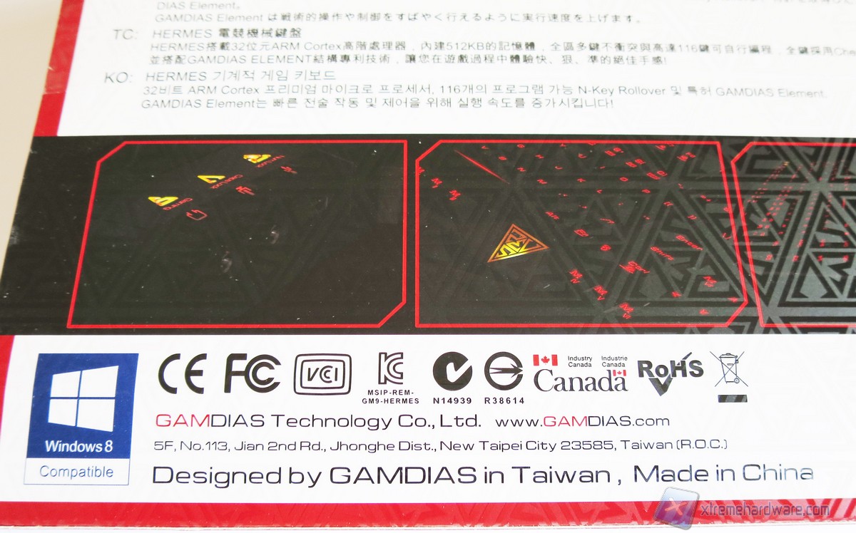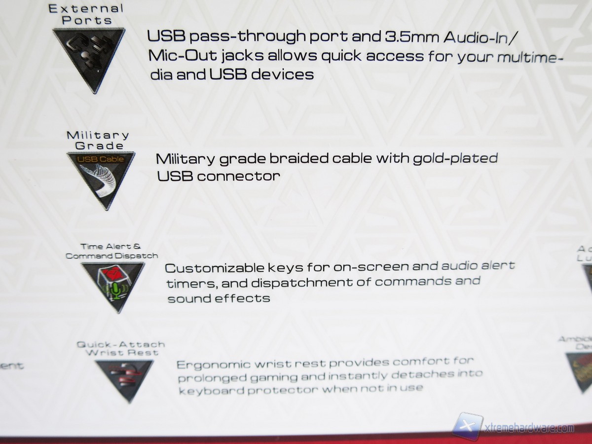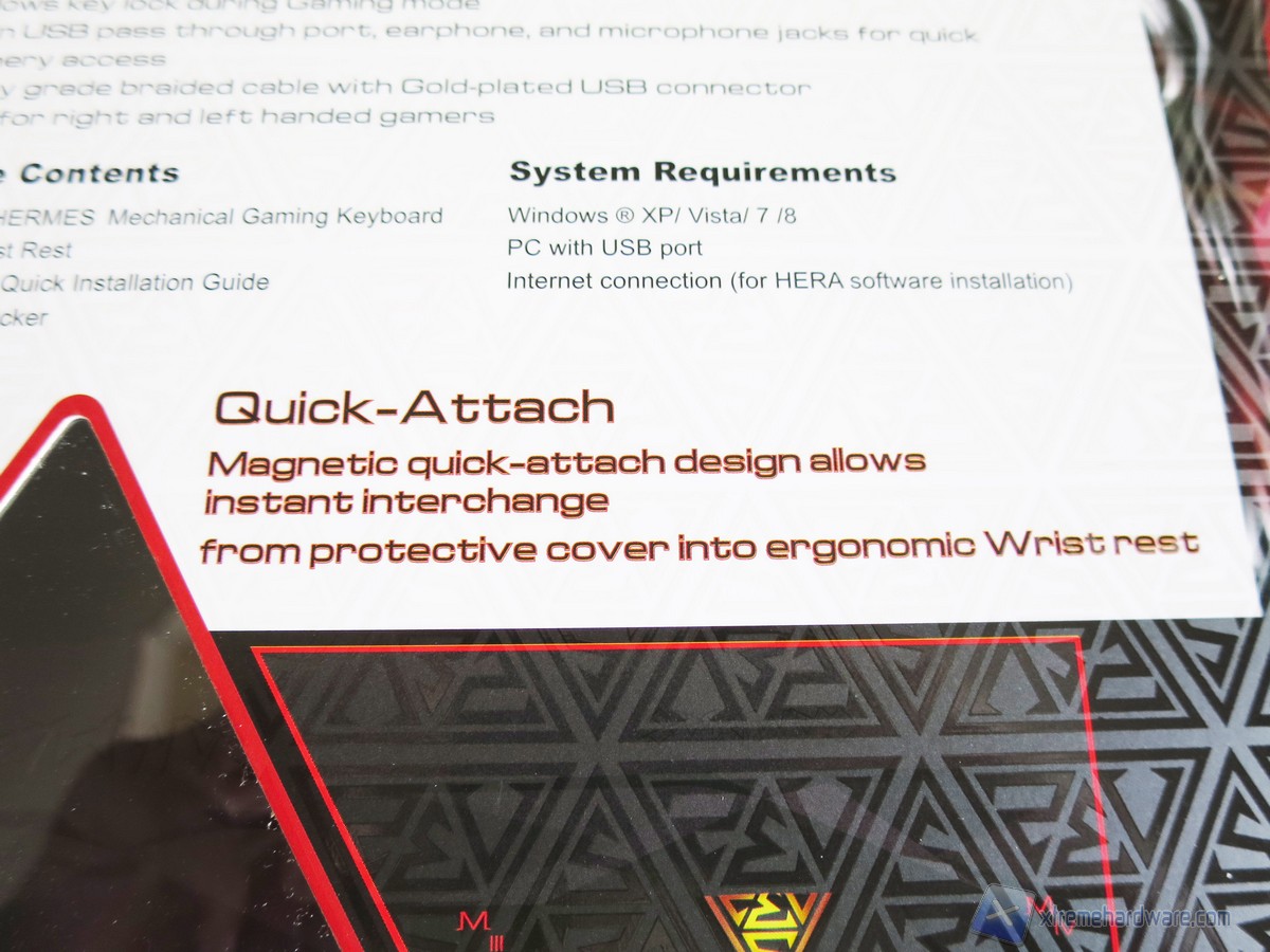 Nel retro della confezione troviamo invece alcune informazioni riportate in varie lingue (tra cui manca l’italiano) oltre ad altre caratteristiche tecniche ed un’immagine illustrativa che completa la grafica. Non manca l’informazione che ci ricorda il tipo di Layout (non e` presente il Layout ITA) e Switch utilizzati. Purtroppo non è al momento disponibile un layout ITA.