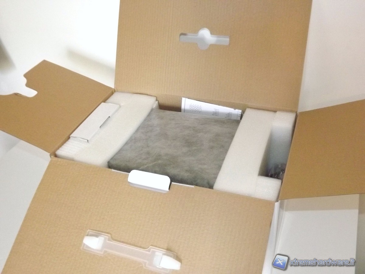Aprendo la scatola vediamo che essa contiene due cavi SATA, un supporto ottico in formato DVD, contenente vari software e drivers (comunque scaricabili ed aggiornabili direttamente dal sito dell'azienda), della pasta termica in tubetto per il montaggio del dissipatore, delle viti per l'assemblaggio ed un paio di fascette in plastica che ci permottono di sistemare al meglio i cavi all'interno dello chassis.
